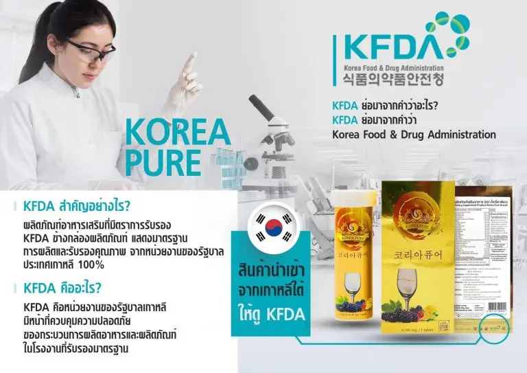 - มาตรฐานการผลิต: GMP, ISO และ KFDA